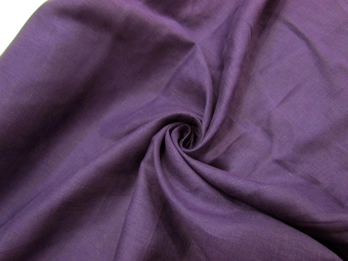 This dark purple linen is a medium weight fabric with a soft and comfortable feel to it. This linen has some slight stiffness to it and is a completely opaque fabric that is perfect for use in dresses, tops, skirts, pants, and various other apparel applications.