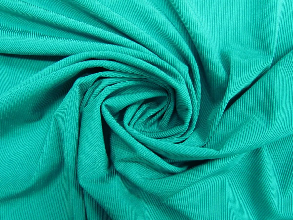 This medium weight nylon spandex has very fine ribs running along the warp of the fabric. This spandex is a comfortable feeling fabric that has excellent stretch and return along the weft of the fabric and good stretch adn return along the warp too. This spandex is an opaque fabric that does lose some opacity the further that it is stretched.