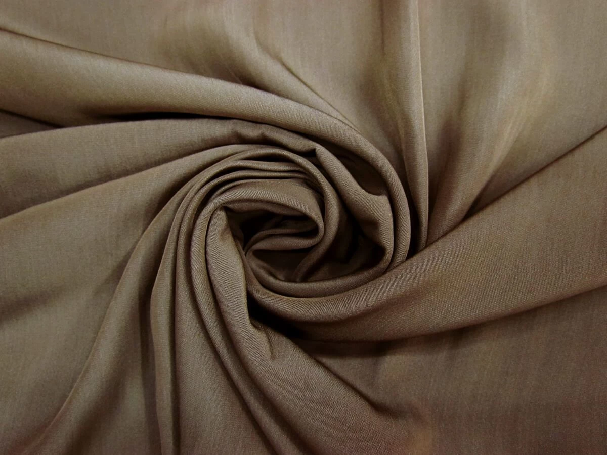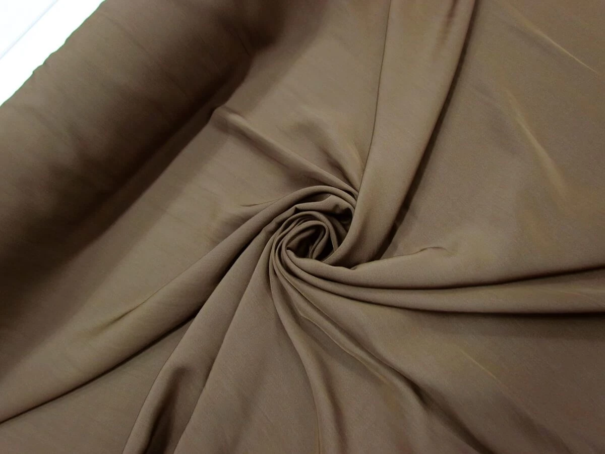 This brown peachskin faille fabric is a light weight technical polyester fabric with amazing drape that was made in Japan. This faille is an ultra soft, comfortable and breathable fabric that is perfect for using as a light, soft lining or as an outer fabric for various apparel applications. This faille is an opaque fabric, although a lining may still be desired for some projects for extra opacity.