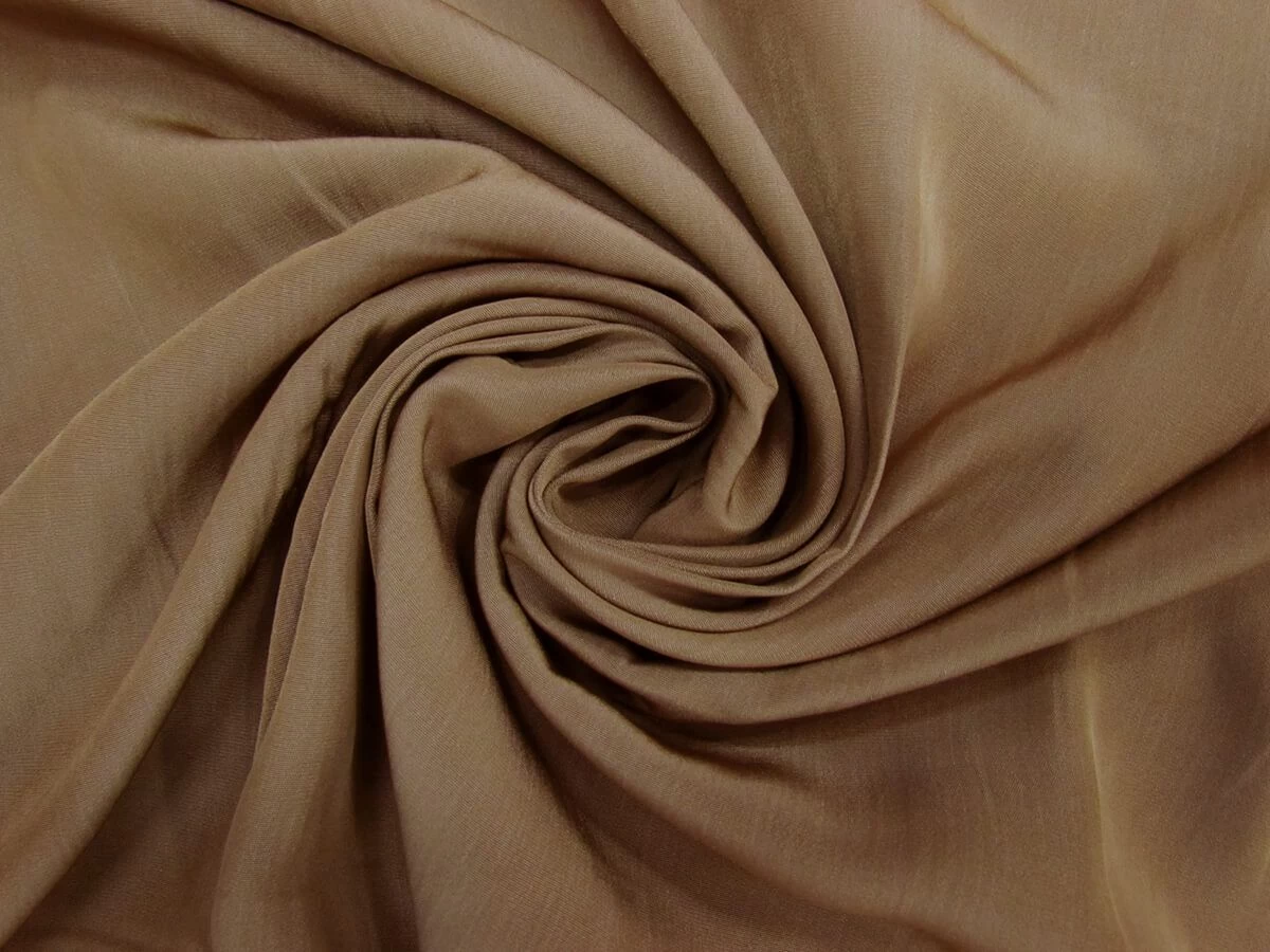 This warm brown peachskin faille fabric is a light weight technical polyester fabric with amazing drape that was made in Japan. This faille is an ultra soft, comfortable and breathable fabric that is perfect for using as a light, soft lining or as an outer fabric for various apparel applications. This faille is an opaque fabric, although a lining may still be desired for some projects for extra opacity.