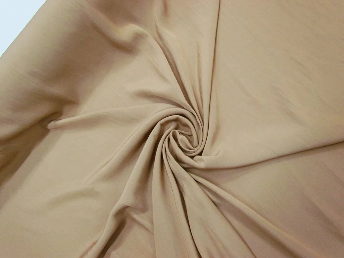 This light brown peachskin faille fabric is a light weight technical polyester fabric with amazing drape that was made in Japan. This faille is an ultra soft, comfortable and breathable fabric that is perfect for using as a light, soft lining or as an outer fabric for various apparel applications. This faille is an opaque fabric, although a lining may still be desired for some projects for extra opacity.