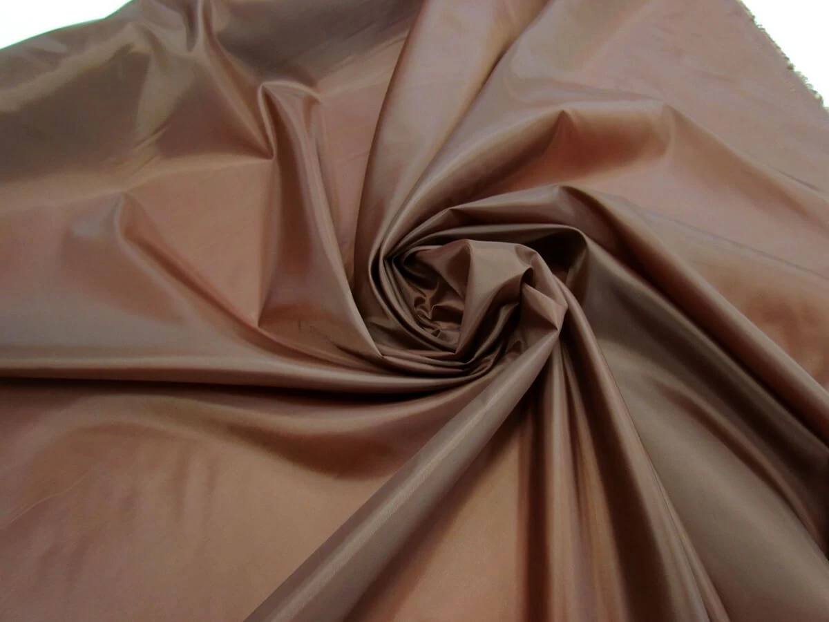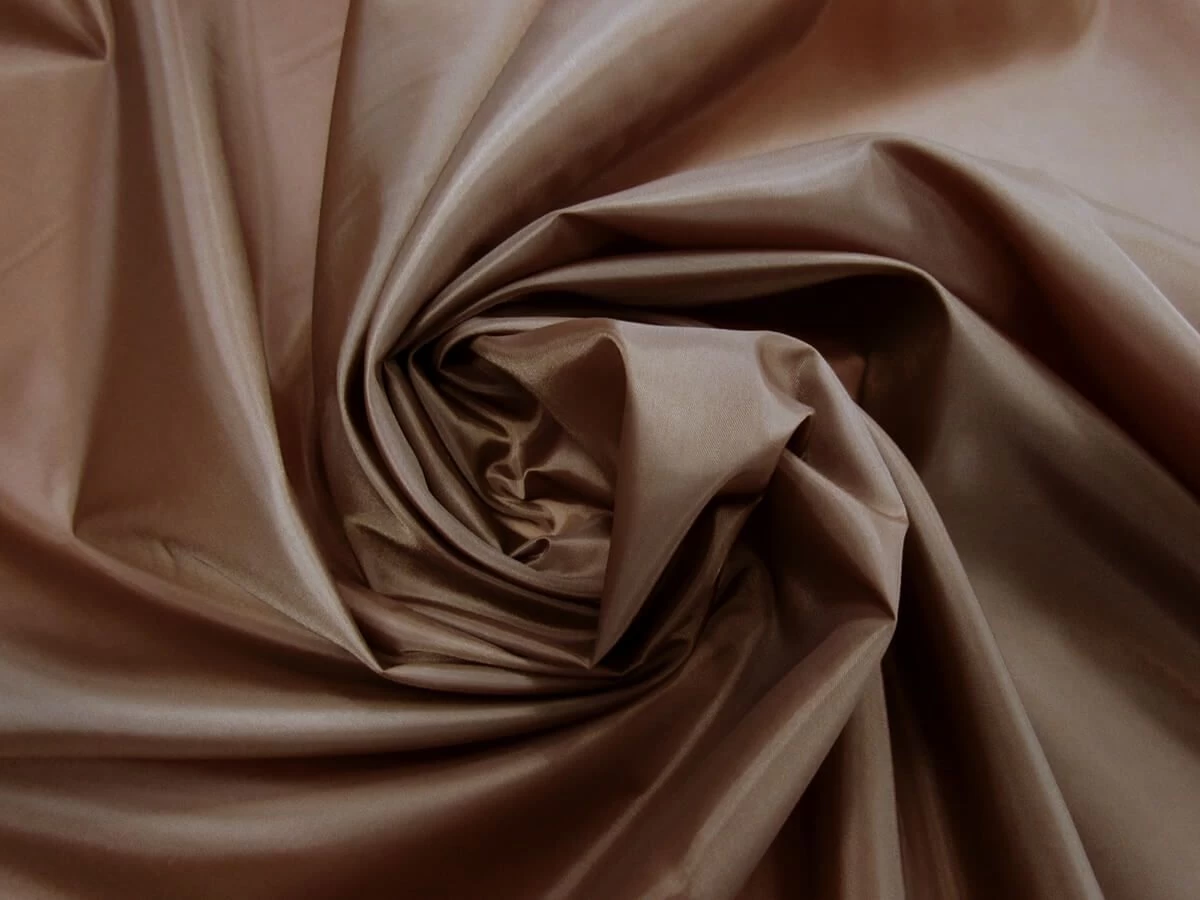 This polyester lining fabric has a smooth soft feel, with a slight sheen finish. This 100% polyester lining is suitable for lining all types of garments, as a slip and easy style lining for jackets, dresses, skirts and other items of fashion and couture. This lining fabric is also useful as an option for decorating events. This lining is a brown colour.