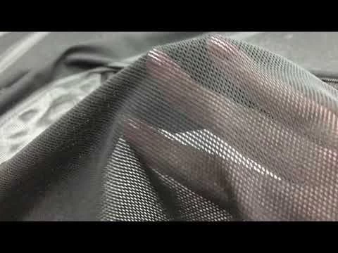 This plain black coloured PBT knit fabric has a small fishnet mesh look, and a textured feel. This fabric is a blend of high quality polyester and P.B.T, which creates a unique durable sports fabric with a natural knit stretch. PBT fabric is chlorine and heat resistant. This mesh fabric only has a very slight stretch in one direction, along the weft of the fabric. Originally manufactured for swimwear, active wear, and other sports uses, this is a good quality mesh knit fabric, with a comfortable lightweight feel.