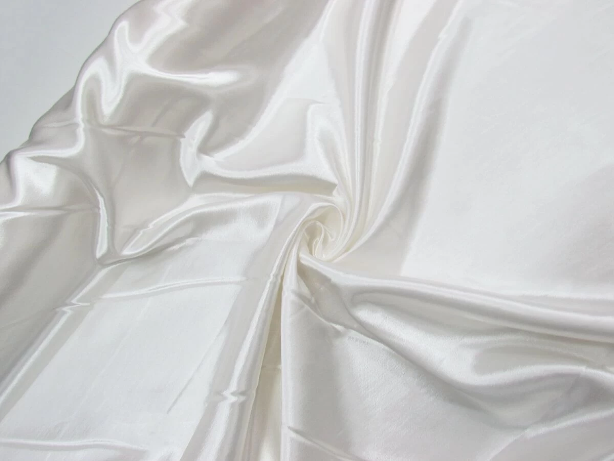 This medium weight satin has a sublty textured look to it with amazing sheen. This satin is a mostly opaque fabric, although some darker colours can be seen through it so a lining may be needed for some applications.