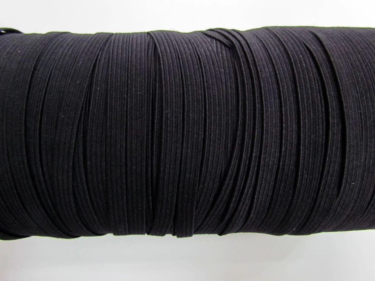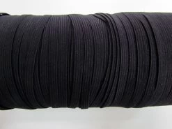 This product is a full roll, of 6mm elastic. This roll size is approximately 182m. This braided elastic is approximately 0.6 cm wide. This braided elastic features ribs of thin rubber elastic covered in black polyester, and which has good stretch and return. Braided elastic is a popular general purpose elastic, with a soft and comfortable feel, that is also durable. Braided elastic is a good choice for narrow widths of elastic.