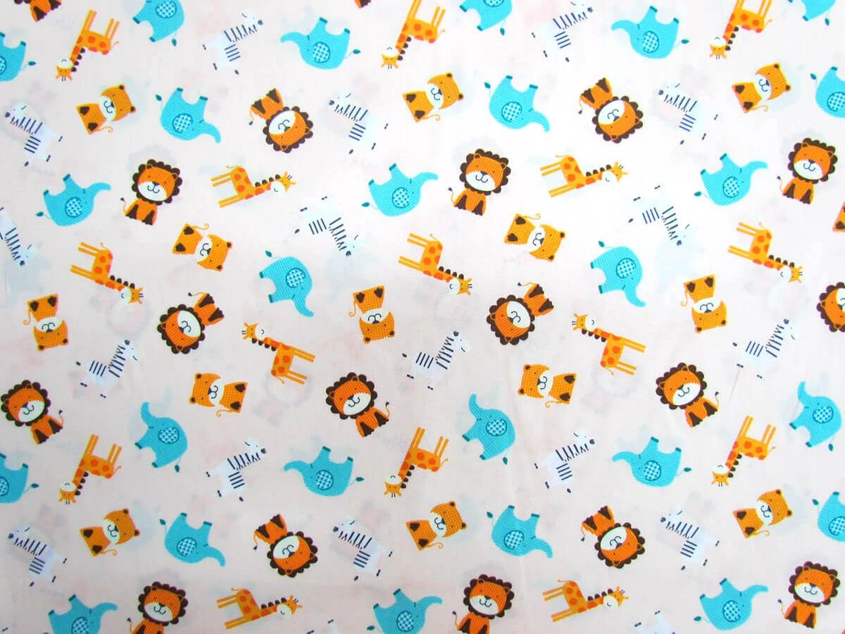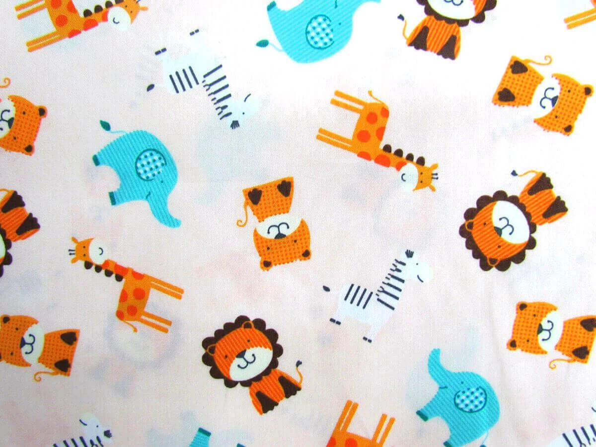 This is a lightweight 100% cotton fabric suitable for patchwork projects that features an adorable animal print on a light peach/beige background. This cotton is also suitable for other clothing and craft projects, although may need a lining in apparel applications.