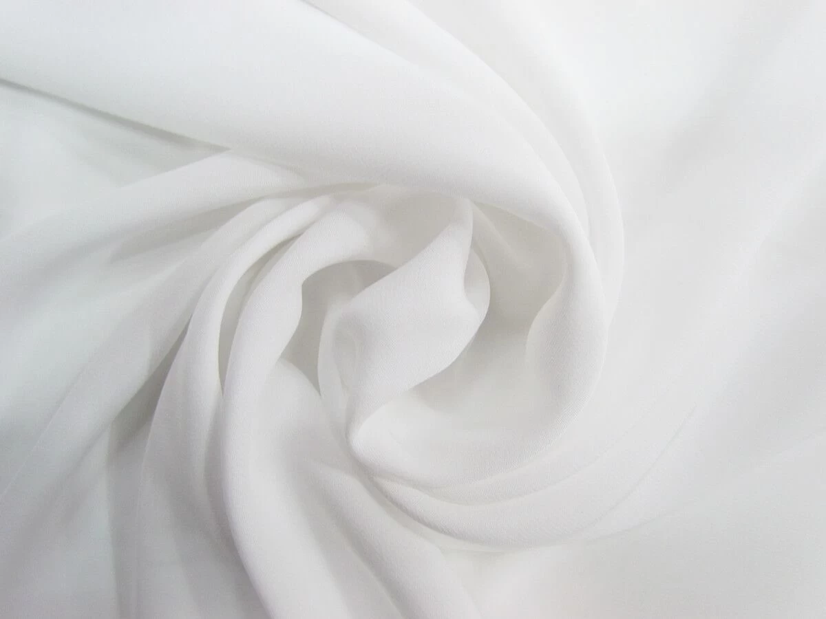 This plain white satin chiffon was made in Japan and is a fabric with great drape and a subtle lustre. This satin chiffon is a very soft fabric that is mostly sheer due to its lighter colour, due to this a lining may be desired in some applications for extra opacity.