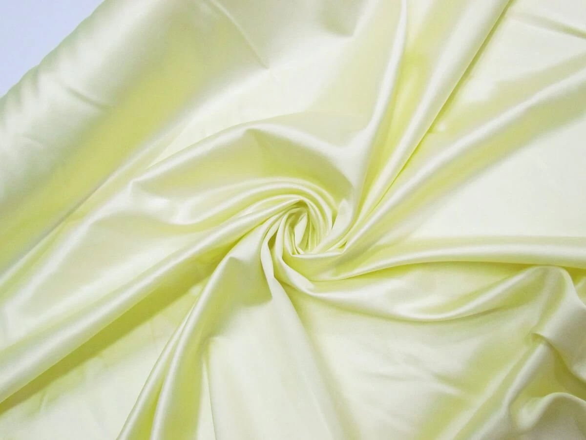 This polyester satin fabric in a lemon yellow is a light weight fabric with amazing drape and a lovely sheen. This satin is semi-opaque and a lining may be deisred for some applications as darker colours may be seen through. This satin has one smooth and shiny side, and one more matte side and has no stretch.