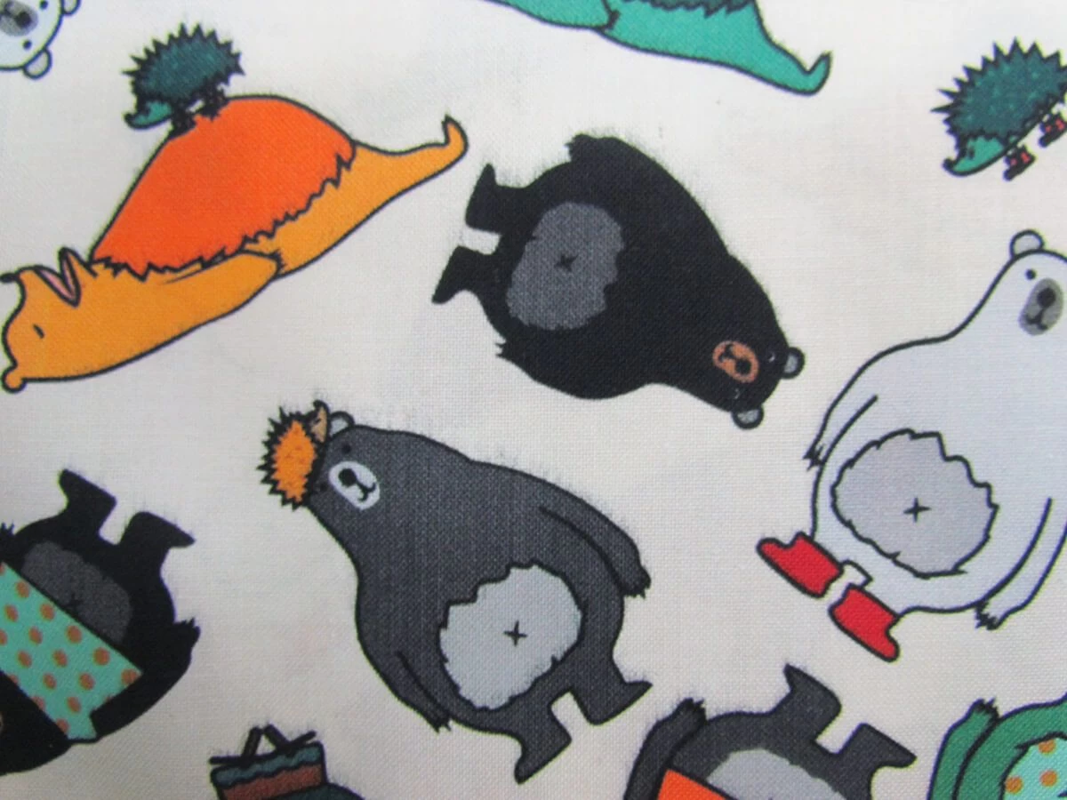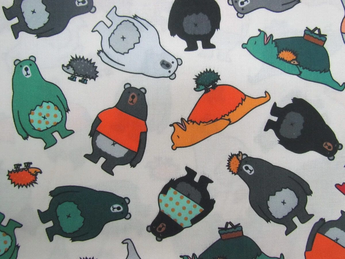 This is a lightweight 100% cotton fabric suitable for patchwork projects that features an adorable bear print on a ligth cream background. This cotton is also suitable for other clothing and craft projects, although ay need a lining in apparel applications.