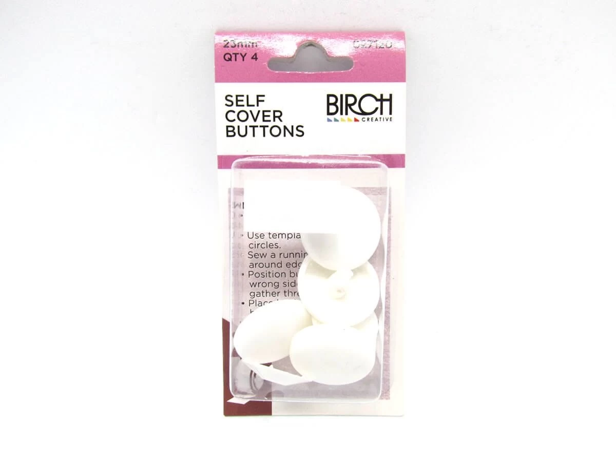 Self Cover buttons allow you to make your own shank buttons using fabric – perfect for mathing buttons to your fabric. This pack includes 4 x 23mm self cover buttons.