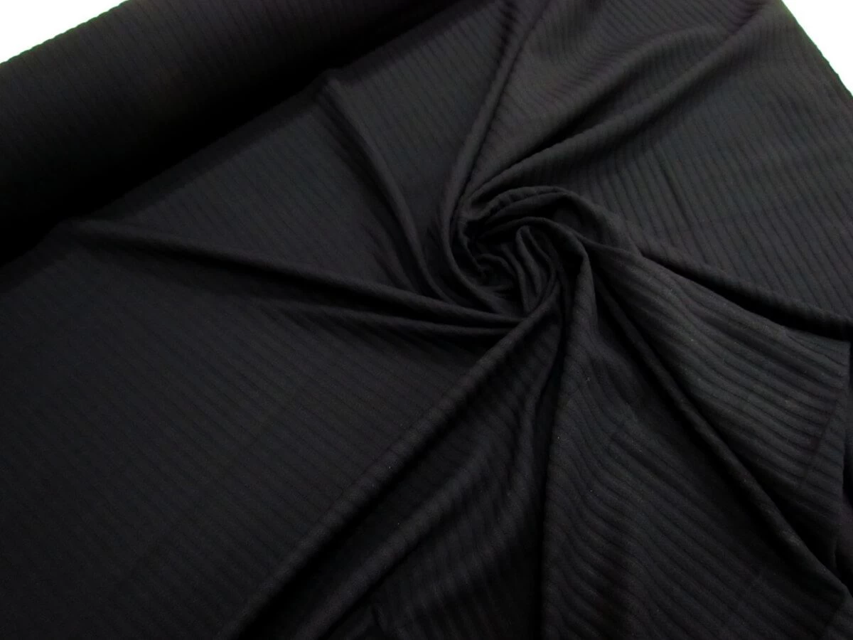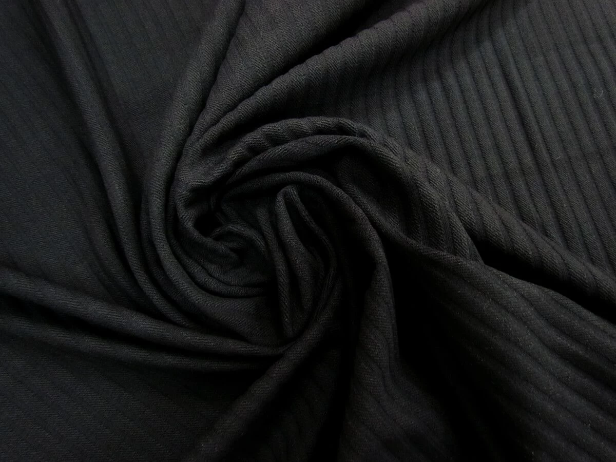 This heavier knit fabric has a thick feel, and a textured ribbed look. The textured ribs on this fabric, horizontally across the fabric, parallel to the selvedge. This is a heavier weight knit fabric, which has a textured comfortable feel. This knit fabric has good stretch and return in all directions. This knit has a lovely opaque look, though may show through a little when stretched.