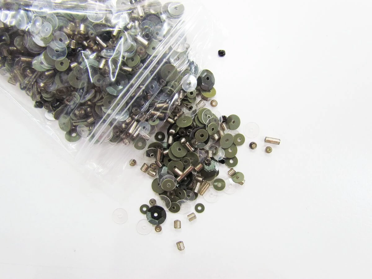 For an absolute show stopper of a dress or costume, look no further than our army green sequin and bead pack from the designer label Rachel Gilbert. Each pack is approximately 20-40 grams, including complimentary sequins and beads, multiple sizes from 2mm to 8mm approximately.