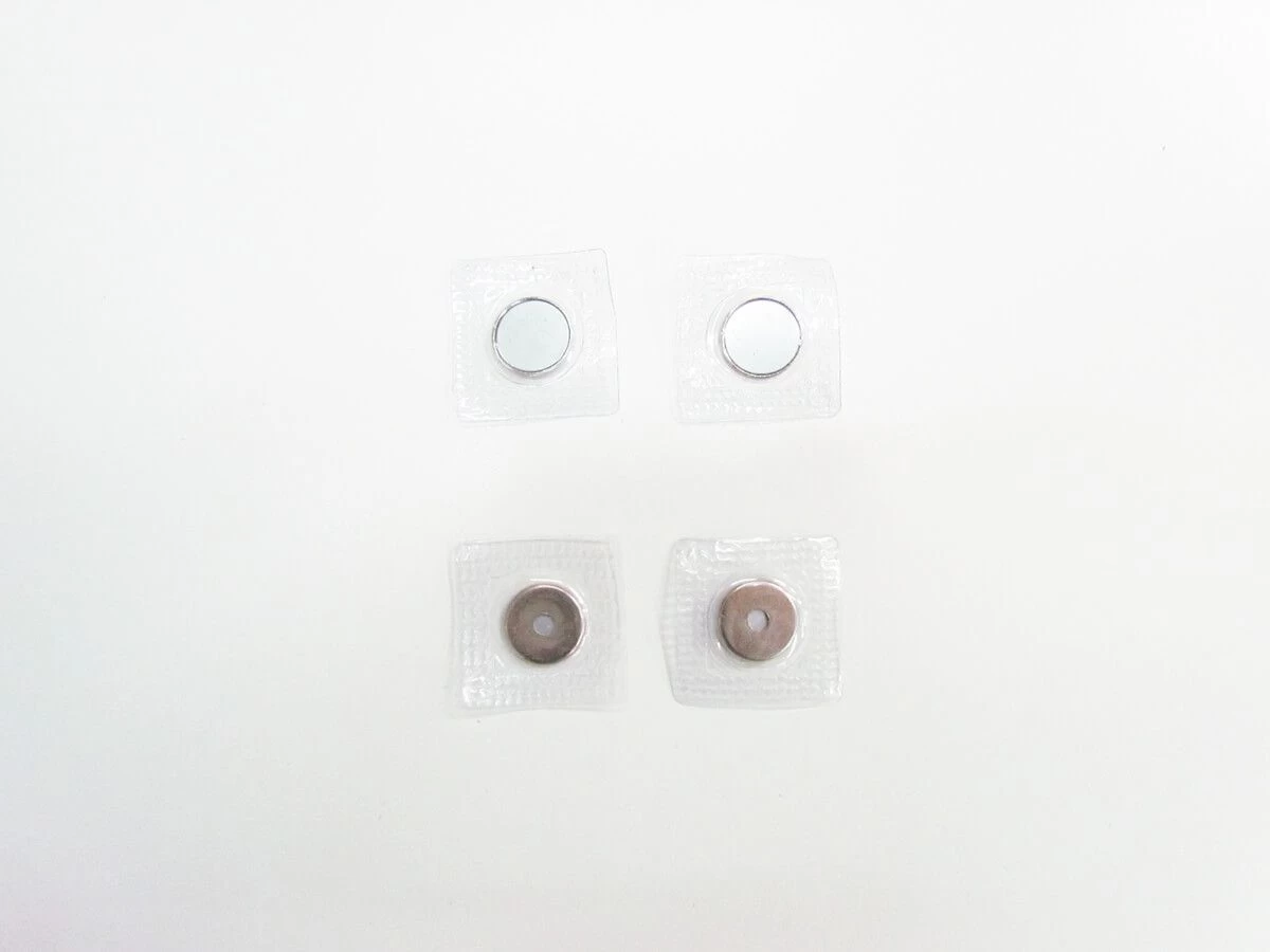 This is a pack of 2 pairs of sew in magnets. The magnets are approximately 15mm – 19mm wide, and are surrounded by a square plastic casing measuring 32mm x 32mm. The plastic casing makes these magnetic closures easy to sew into garments, crafts, and accessories.