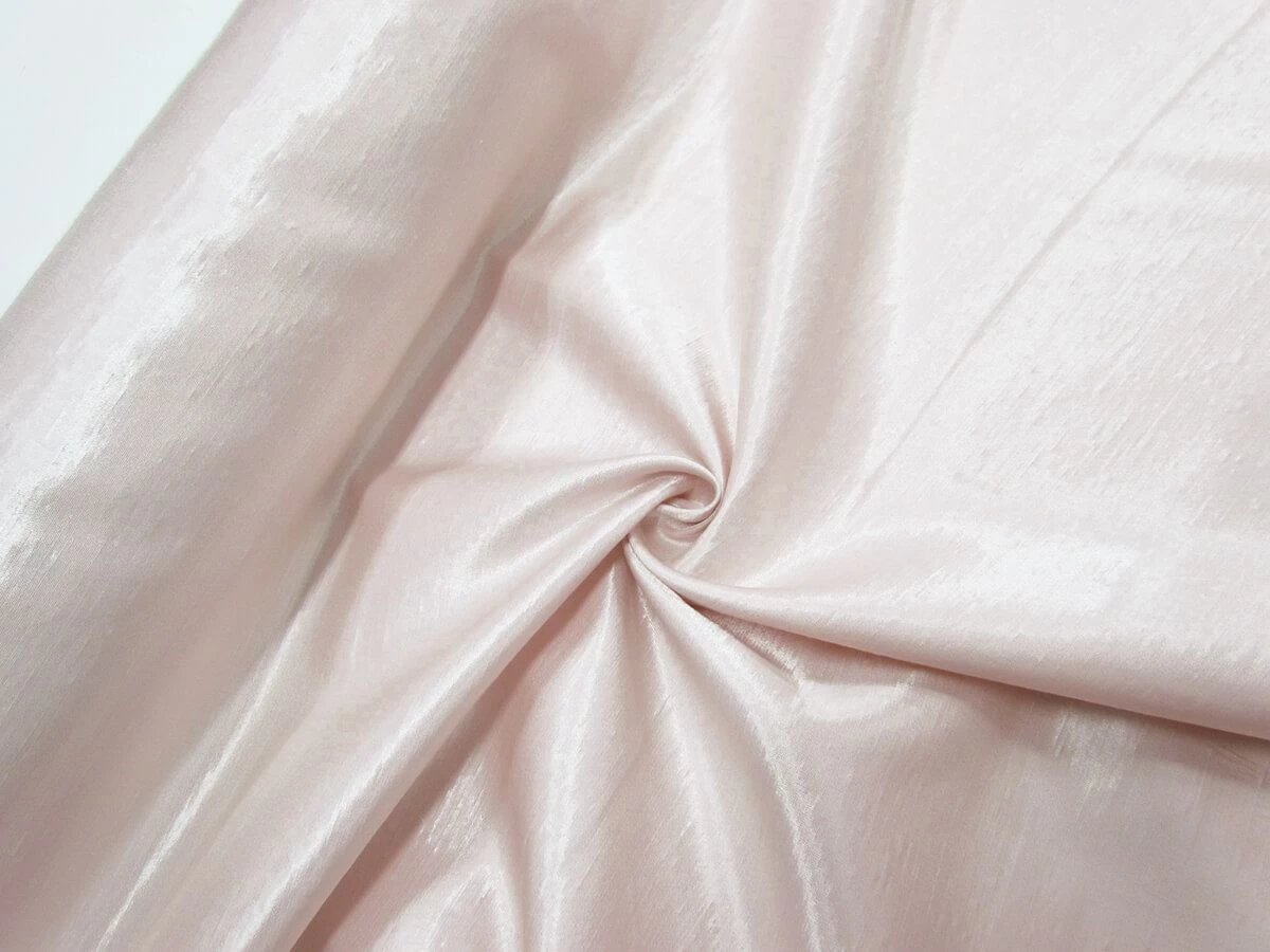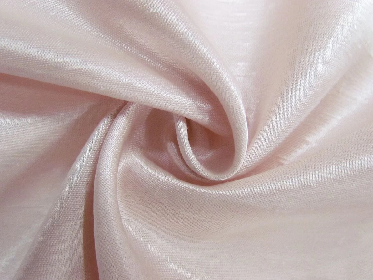 This polyester and viscose blend satin has a shantung look to it. This fabric has one smooth side with a shiny satin finish and the other side has a more delustered and textured finish to it and is a slightly darker colour, as seen in image 3 and 4. This satin is a medium to heavy weight fabric and is opaque.