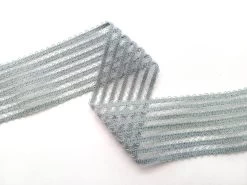 This elastic trim is approximately 45mm wide. It is made up of rows of elastic held togetehr with light invisible threads, giving a sheer appearance. It has good stretch and return and would be suitable for decorative use in waistbands, lingerie and the like.