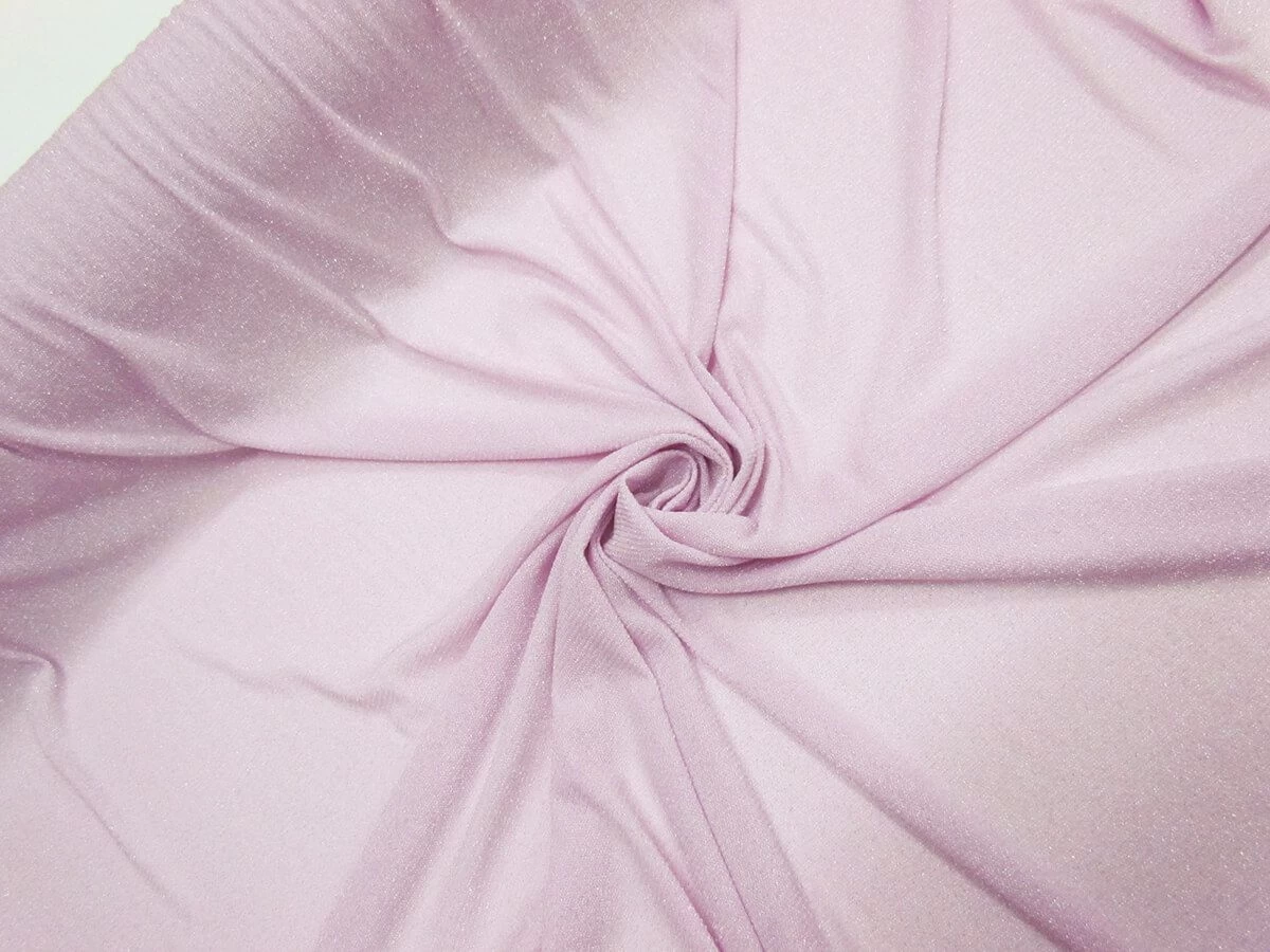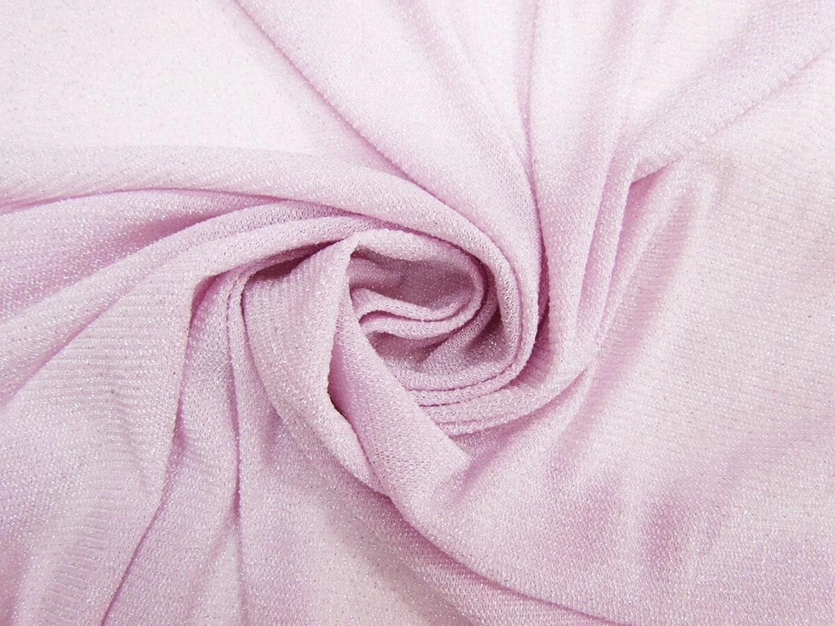 This glitter knit fabric is a soft, light weight fabric with amazing drape and stretch. This glitter knit has an excellent degree of stretch and return along the weft of the fabric, with a good degree of stretch along the warp too.This glitter knit fabric has a wonderful sparkle throughout and is a mostly sheer fabric, due to this a lining may be desired for certain apparel and costuming applications.
