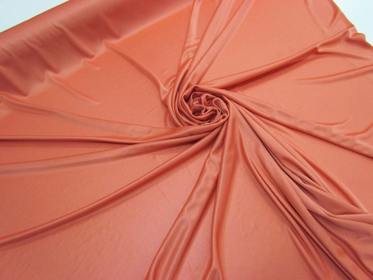 This interlock knit jersey is wonderfully drapey, with a slinky feel. There is only one direction of stretch in this jersey fabric, along the weft of the fabric. This knit fabric has a sheen finish, which catches the light well. This slinky soft jersey, will make a nice jersey lining option.