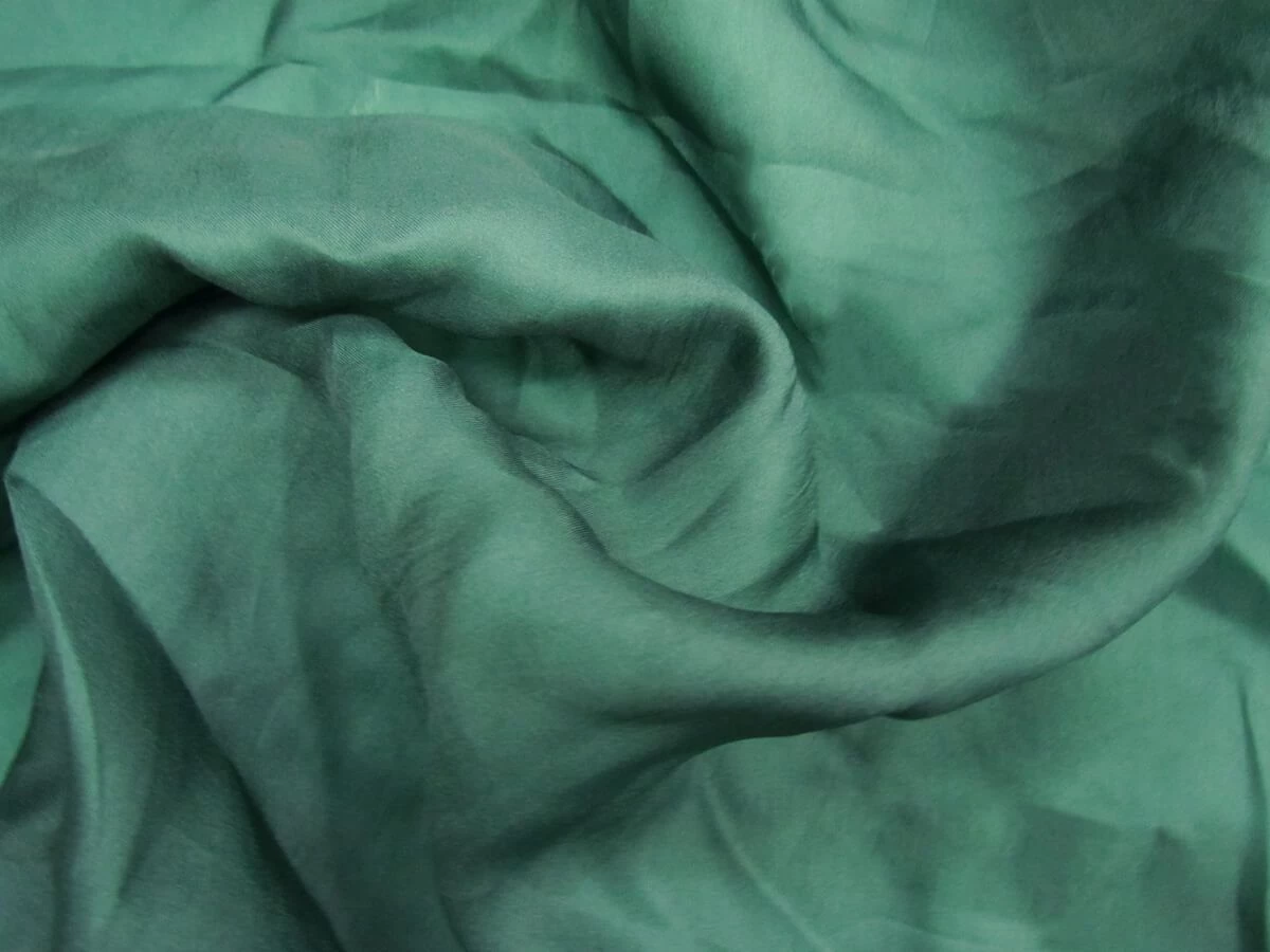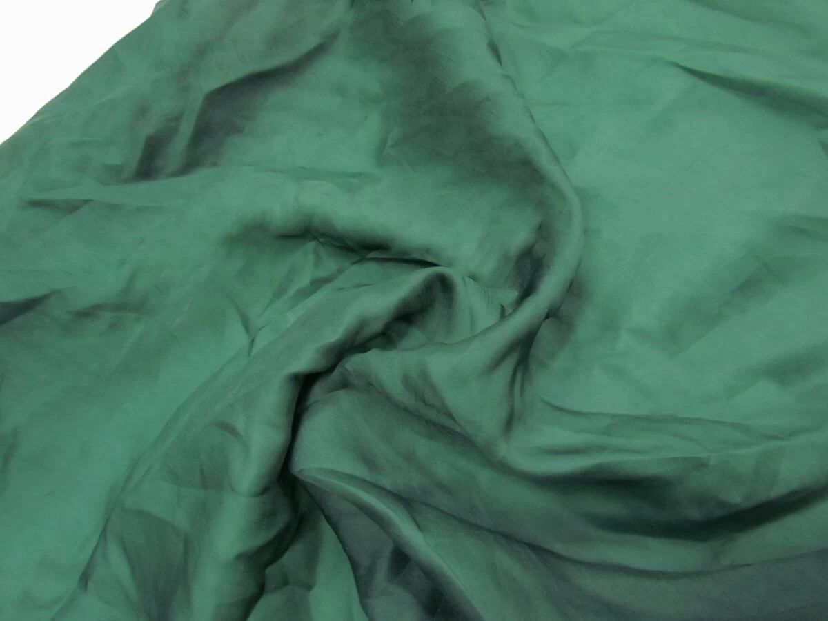 This deep green organza is a very light weight fabric made from 100% silk with a good amount of structure and stiffness. This organza is a fabric with a slight lustre and a very soft feel that holds its shape well while still having a very soft sheer look to it. As this organza is sheer, a lining may be desired or some applications