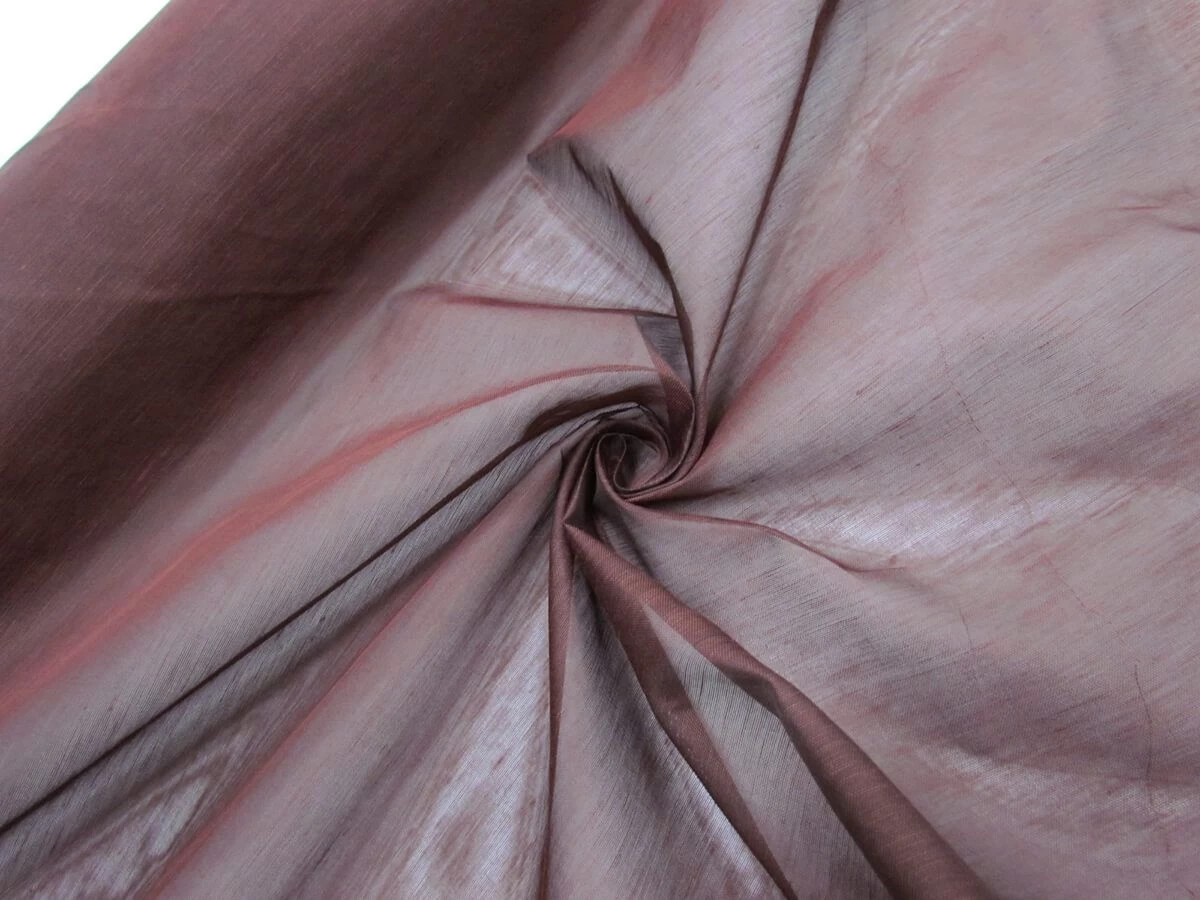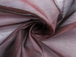 This deep mahogany coloured organza is a silk organza with a shot finish. Red threads run along the weft of the fabric with a slub finish, and fine black threads run along the warp. Due to the slub weave, this sheer fabric has a more structured feel compared to other organzas.