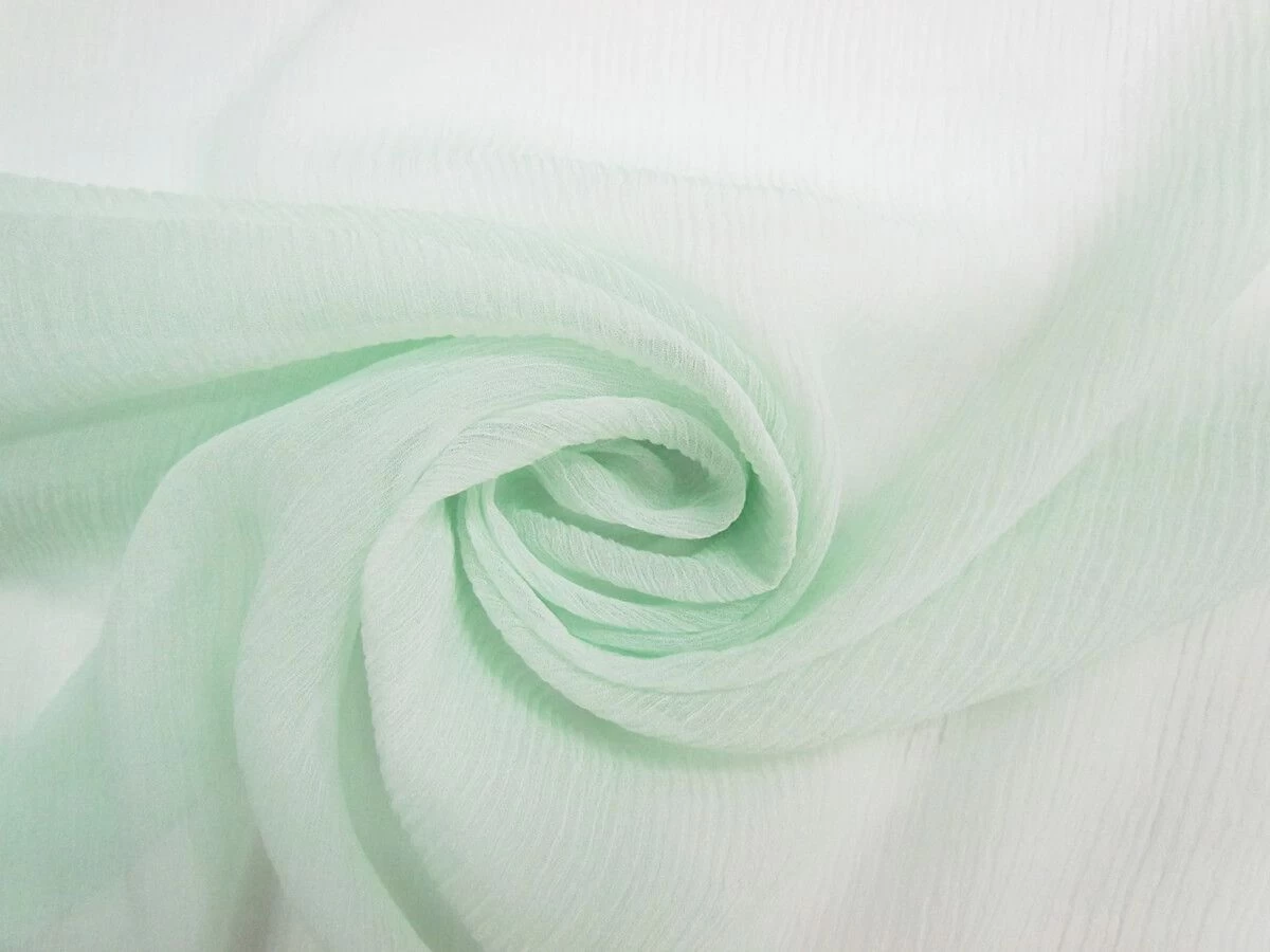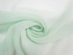 This minty green 100% silk chiffon is a very light weight fabric that has a lovely yoryu texture. This silk yoryu chiffon has a soft flowy look and is a sheer fabric, due to this a lining may be desired for apparel applications. This silk has a very light stretch along the weft of the fabric due to the yoryu weave and texture.