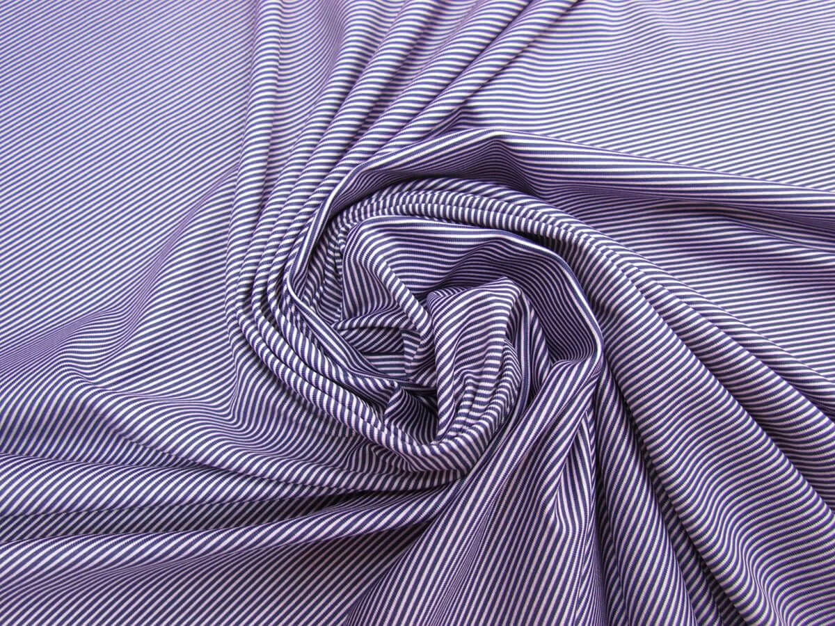 This printed spandex has a lovely comfortable feel. The striped print on this spandex runs vertically down the width of the fabric, and has a pink and navy look. This spandex has great stretch and return in all directions. This spandex is good for dance wear, costumes, and active wear. Originally from a local swimwear designer, this spandex is also be suitable for swimwear uses. This spandex is best teamed up with a matte spandex swimwear fabric or swimwear lining fabric if using for swimwear. As this is such a stretchy spandex, so the fabric does become less opaque when stretched and does show through, and a lining fabric may be required for garment uses.