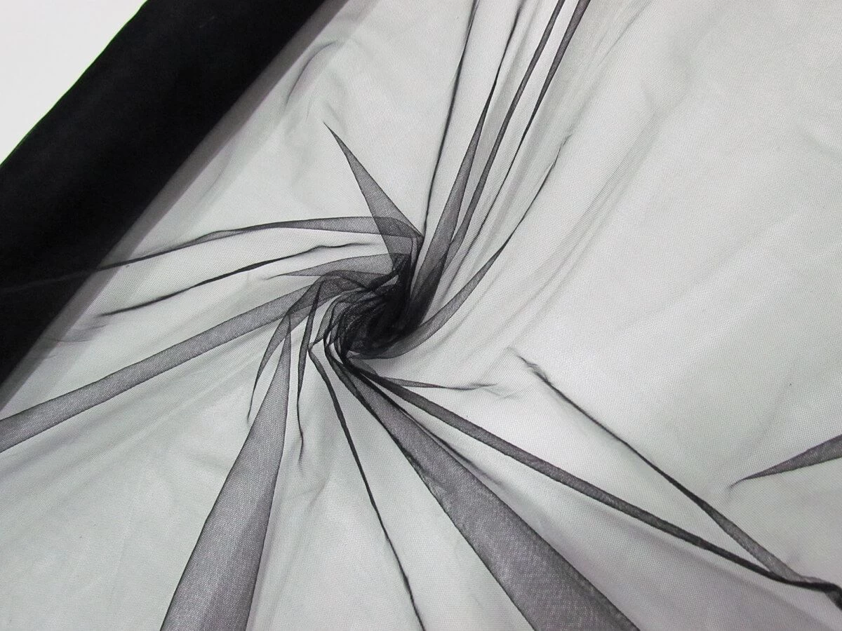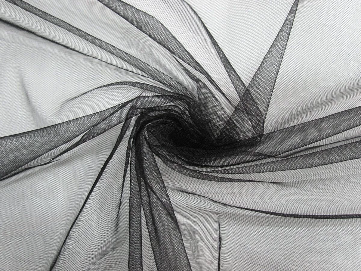 This black tulle is a very soft and light weight net fabric with a light degree of two way stretch. This tulle is very sheer, with one layer being barely visible with a subtle colour. However, when this tulle is layered or gathered it has a more opaque look and more concentrated colour. This tulle is ideal for use in various apparel, costuming and eveningwear applications.