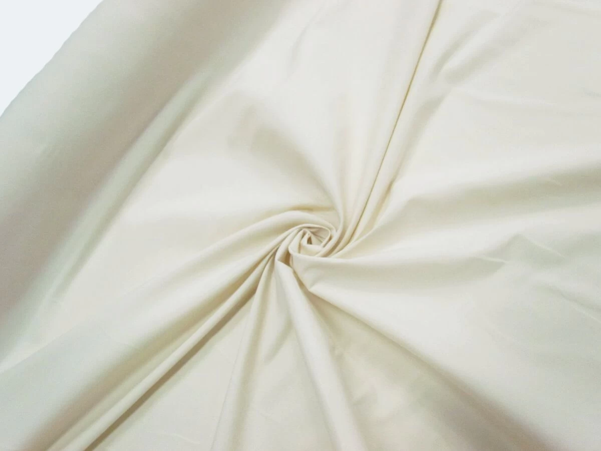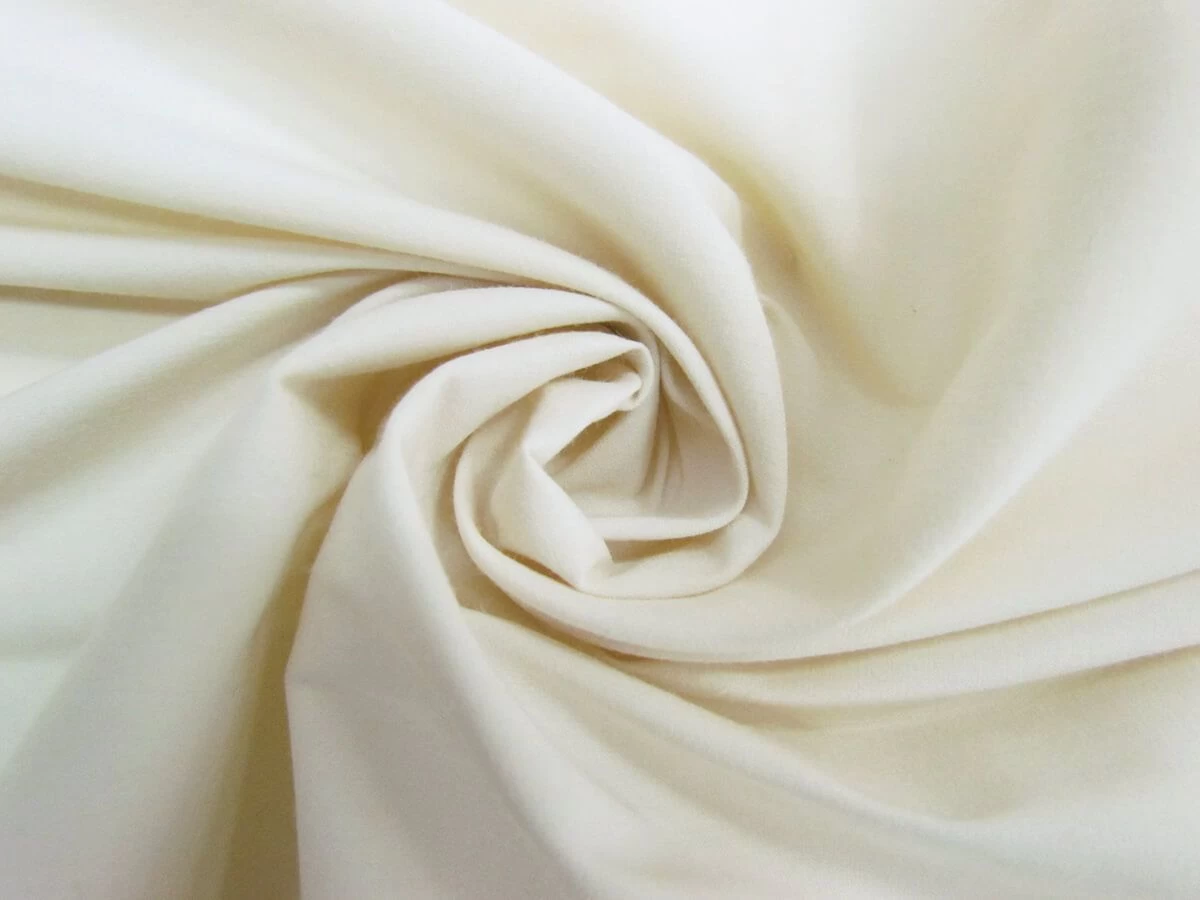 This light cream stretch shirting is made from a blend of cotton, polyester and elastane, producing a soft breathable fabric with stretch. This cotton blend shirting has great stretch and return along the warp of the fabric with no stretch along the weft. This stretch shirting is a mostly opaque fabric, and does sheer more when stretched, so a lining may be desired for some applications. This light weight shirting has nice drape and is perfect for a variety of projects such as shirts and tops as well as skirts and dresses and as a lining of other garments.