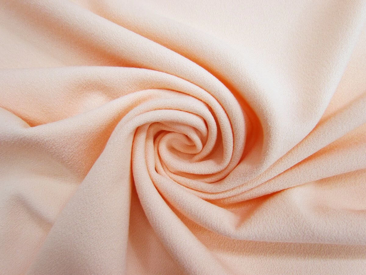 This heavy weight double crepe in a soft pink has a nice crepe texture. This double crepe has a soft and comfortable feel and slight two way stretch and return. This crepe is a mostly opaque fabric, and a lining may be desired for some applications to stop very dark colours showing through.