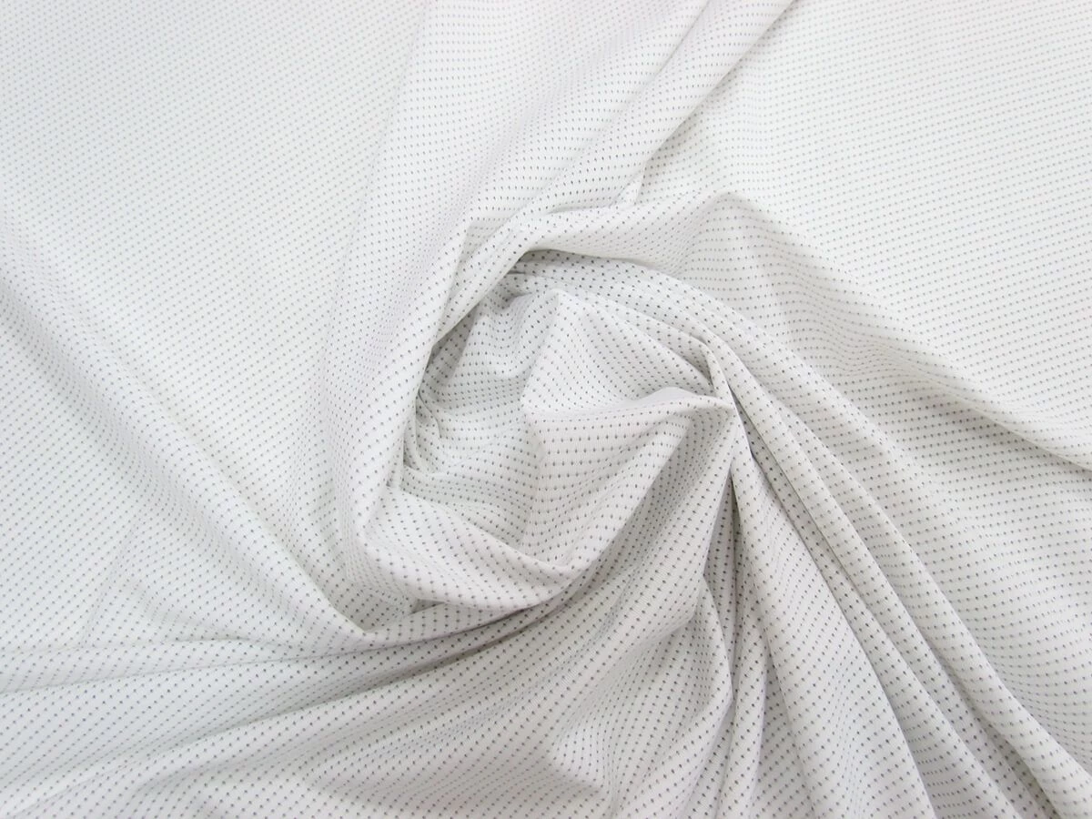 The feel of this lining is pretty typical of a swimwear lining / sports lining, soft with a slight texture, though with a tiny eyelet hole detail in the knit. This lining fabric has some stretch and return in all directions, with the best stretch being along the warp of the fabric, and then a little give along the weft. This lining fabric is semi-opaque, and sheers more when stretched.