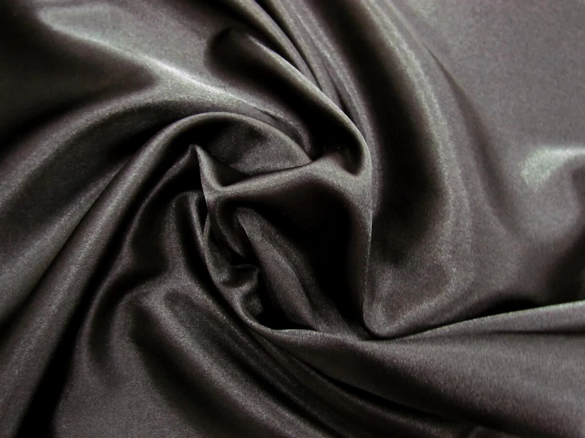This dark chocolate brown coloured satin is light and drapey with a lustrous sheen. This satin has a degree of stretch and return along the weft of the fabric. Perfect for evening wear, couture, bridesmaid dresses, tops, blouses, formals, tops, dresses, gowns and skirts or luxurious sleepwear. This stretch satin drapes really well, and is reasonably light. A lining fabric recommended for skirts and dresses, or this fabric could be used as a stretch woven lining.