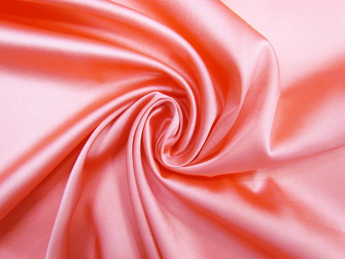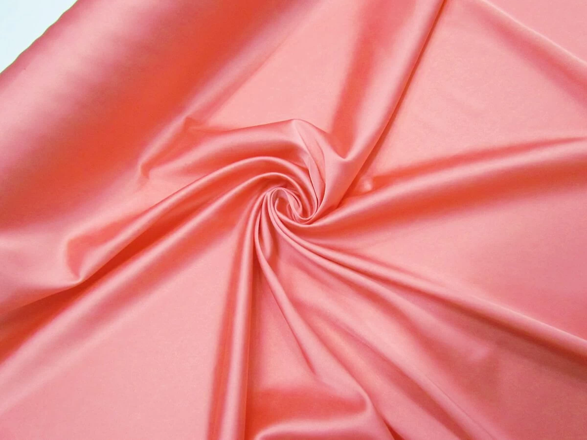 This lovely vibrant pink polyester satin is a light weight fabric with a good amount of stretch and return along the weft of the fabric. This sating has a very soft feel and is opaque, although may sheer slightly when stretched. Due to this a lining may be desired for some applications.