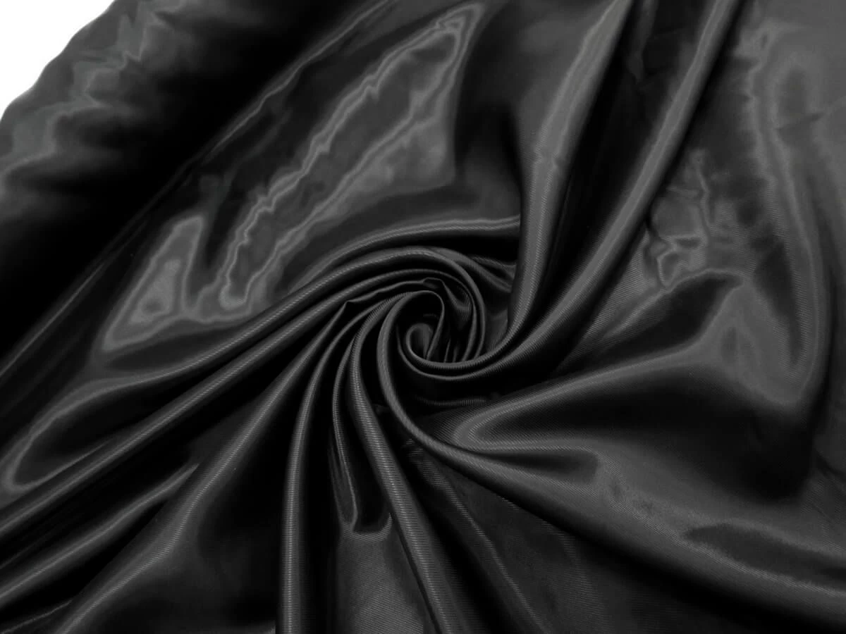 This polyester lining is a light weight fabric with a lustrous finish and a twill weave. This black twill lining is an opaque fabric that is perfect for use as a linin for jackets, coats, pants, dresses and various other applications.