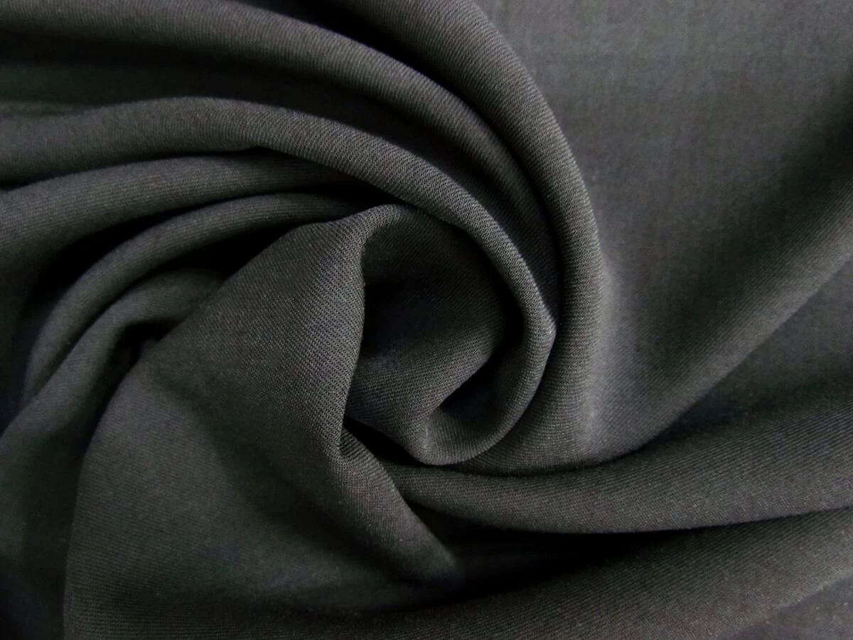 This polyester twill has a mechanical give and lots of drape. This suiting is medium weight fabric that is completely opaque and suitable for a variety of projects.