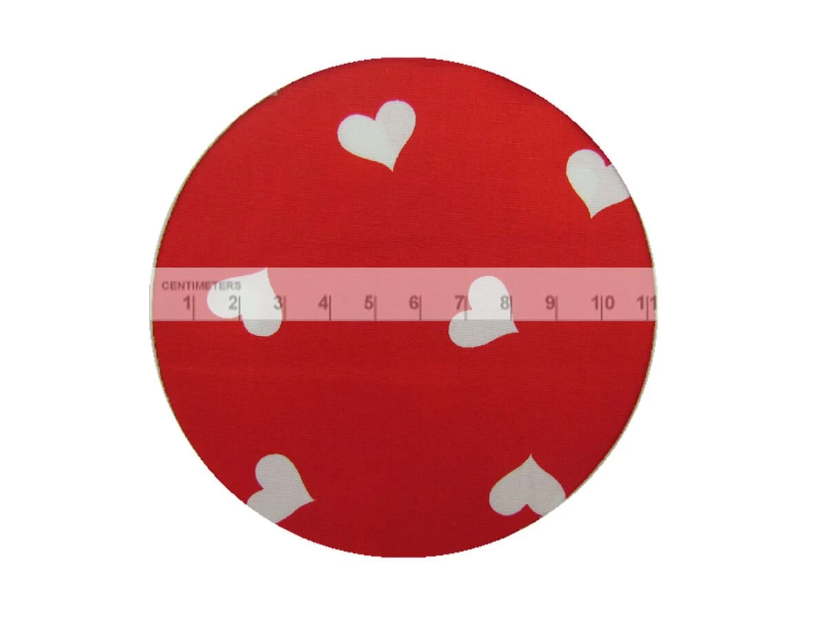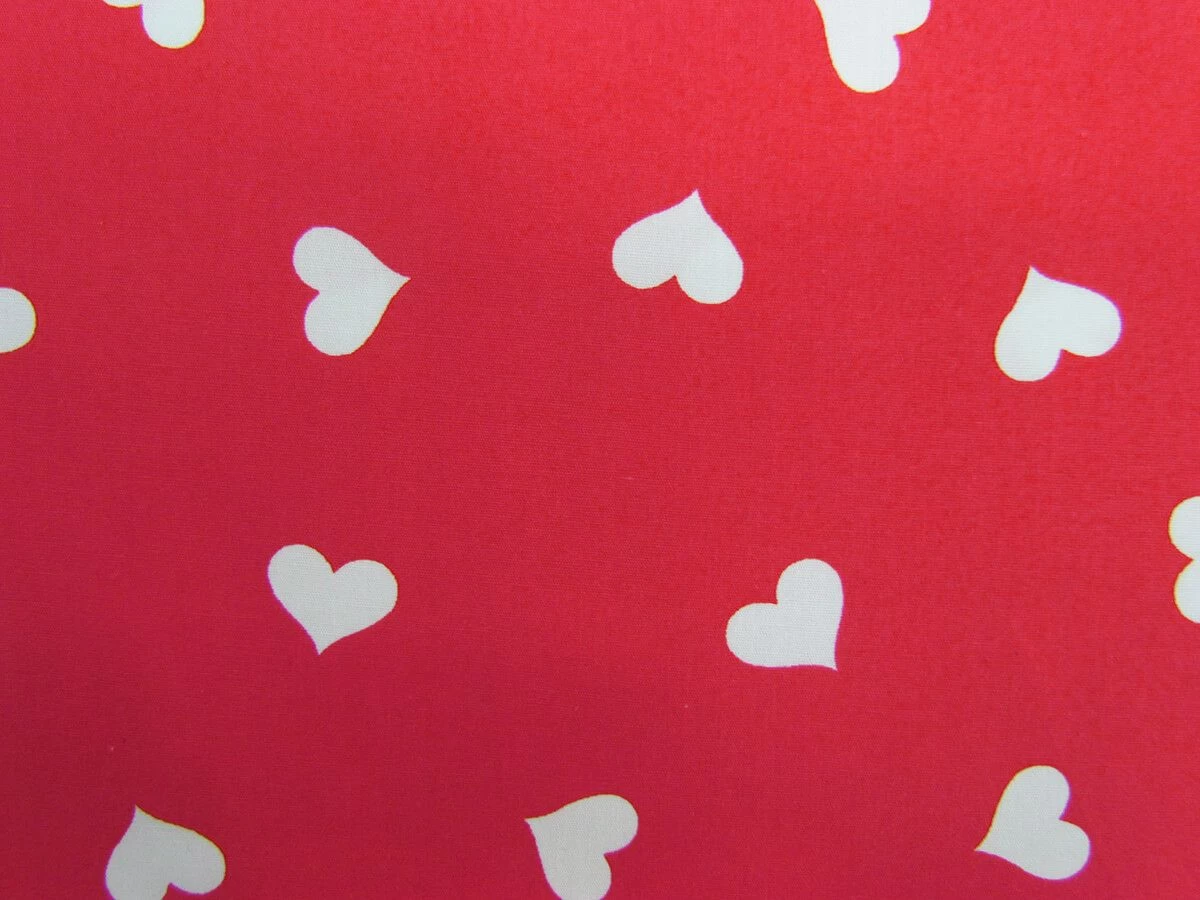 This is a lightweight 100% cotton fabric suitable for patchwork projects that features a white heart print on a red background. This cotton is also suitable for other clothing and craft projects, although may need a lining in apparel applications.