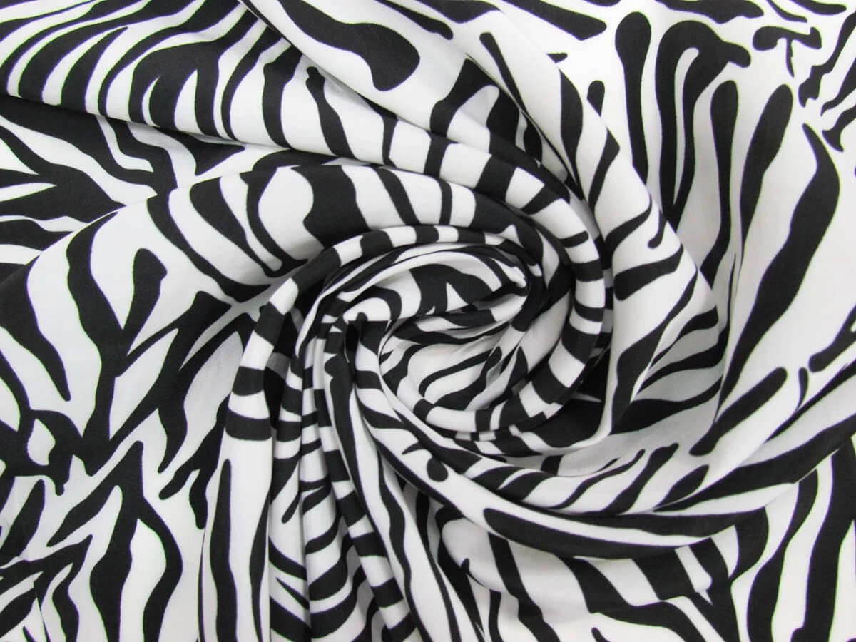 This diamond zebra print peachskin faille fabric is a light weight polyester fabric with amazing drape. This faille is a soft and comfortable fabric that is perfect for various apparel applications. This faille is a semi-opaque fabric and a lining may be desired for some projects for extra opacity.
